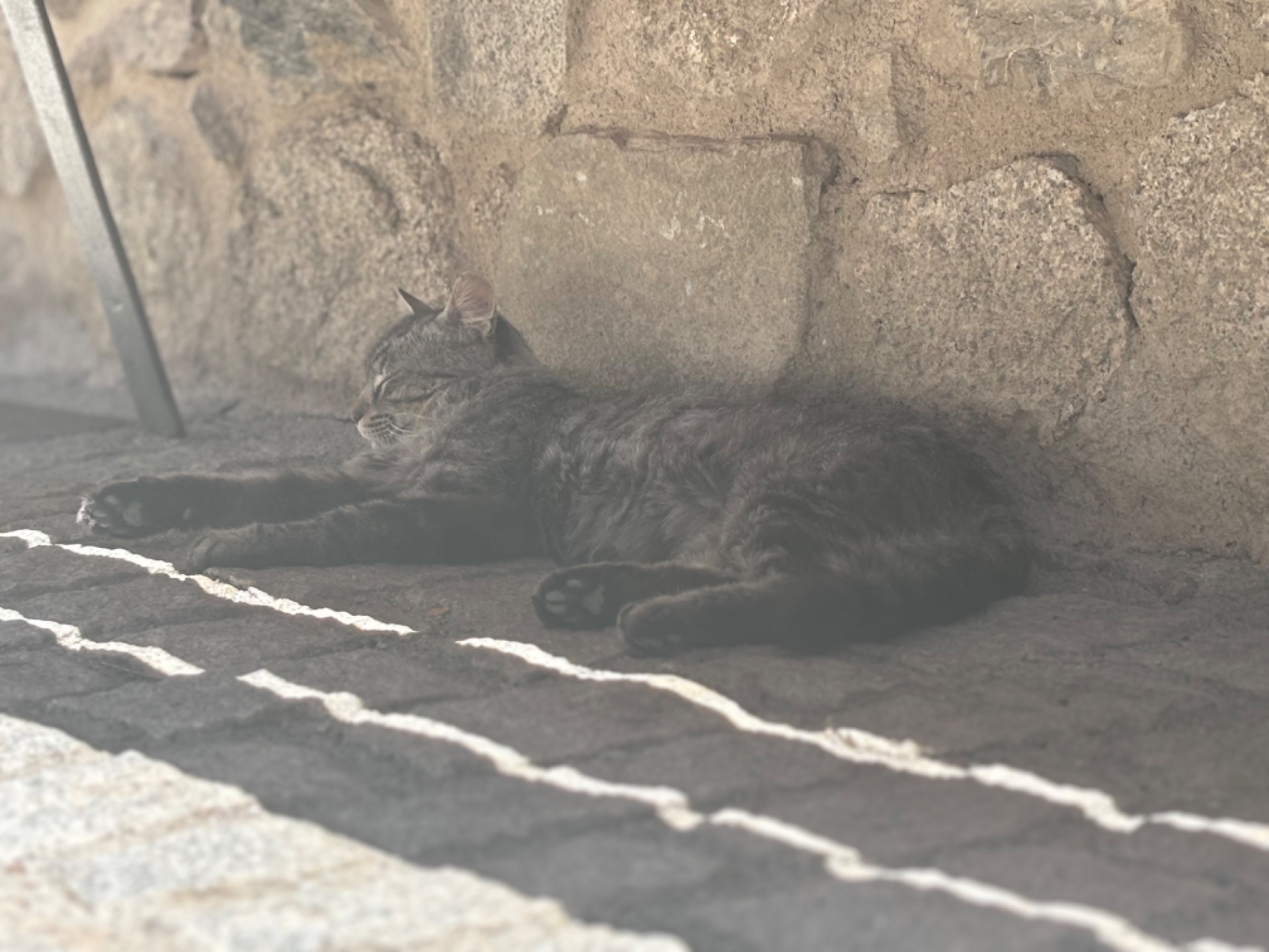 Dáváme se na chvilku do řeči, zjišťujeme kdo je odkud a vzhledem k tomu, že oni jsou z Belgie, kde my nebyly ale my z ČR, kde oni před pár lety byli, tak jsme probrali všechna místa, která u nás navštívili a která rozhodně nemají příště vynechat (jako třeba Beskydy, že❤️). Loučíme se a jdeme dolů do úzkých městských uliček. Potkávám tady dvě španělské kočky, tak pořizuji pár fotek s těmito očividně zkušenými modelkami a pokračujeme do našeho ranního krámku. Bereme si meloun, bagetky, salám, sýr, jarmon, kukuřici, pár rajčat a okurku, milá slečna nám to tam hezky všechno naťuká a už si to štrádujeme zpátky k autu. Plán je jasný, vzít prkno, nůž, meloun a jít se vyvegetit k vodě, kterou máme hned za autem.