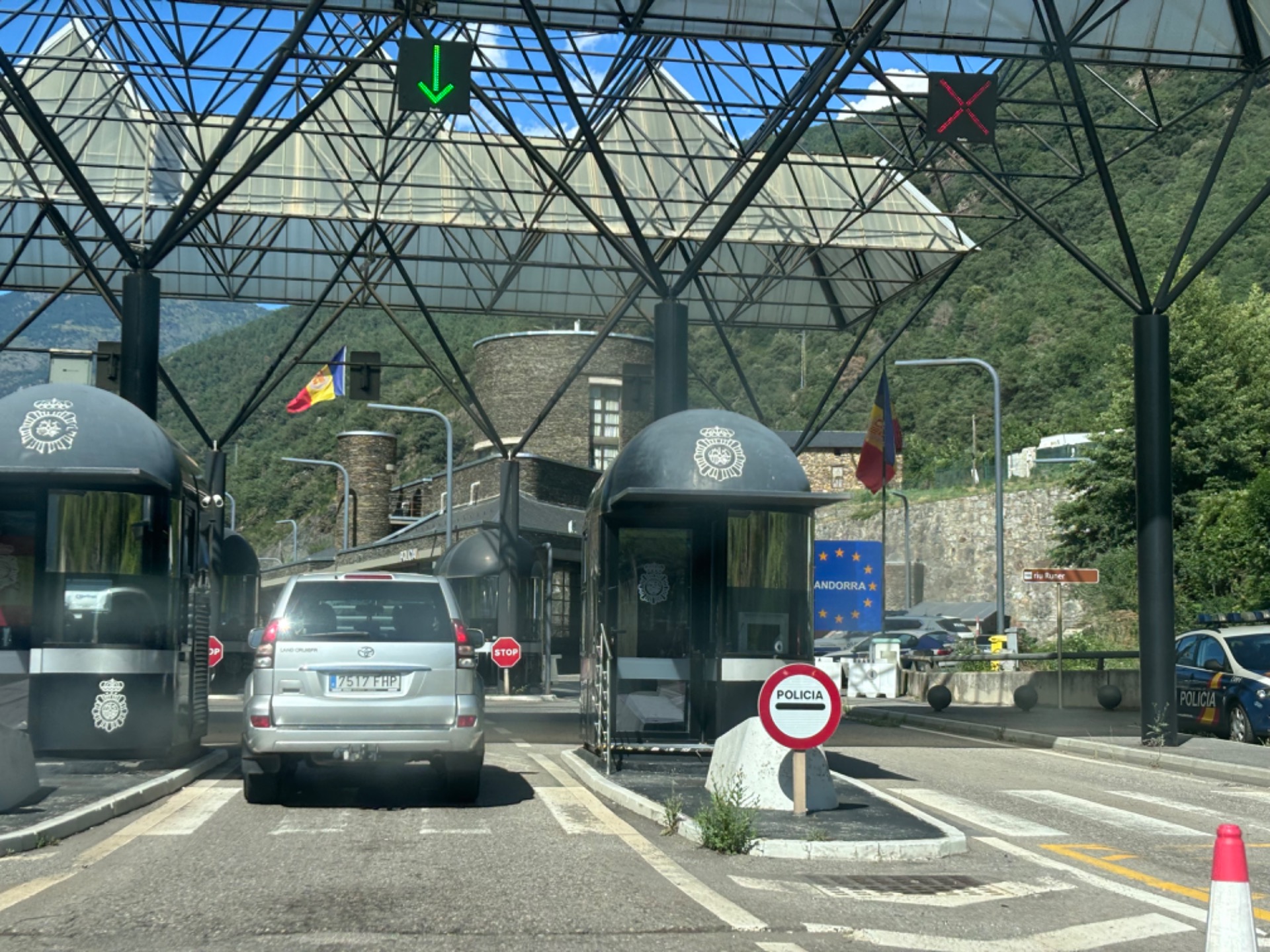 Má to ale malý háček. Máme dojezd v nádrži asi 100 km. A tahle zkratka vede skrz hory, serpentiny a vracečky a podobné věci, které sice má osobní šoférka spíše preferuje, ale je při nich daleko větší spotřeba a hrozí, že někde zůstaneme viset. Proto to po chvíli otáčíme směr benzinka a průjezd místo hor městy. Ve druhé části cesty už musím dávat pozor i na cestu, protože po vjezdu do Andorry je to jedno město za druhým a vzhledem k tomu, že je tady veškerá civilizace naňahňaná mezi horami, je tu celkem velký provoz na malém prostoru a je třeba být neustále ve střehu. Na jednom velikém kruháči sjíždíme blbě do slepého výjezdu, ale naštěstí je tady dost místa na otočení a po pár minutách nás paní v černé audině pouští v provozu před sebe, jinak bychom tam asi stály ještě teď. Projíždíme hlavním městem a ještě pár dalšími a za chvíli už začínáme stoupat do hor.