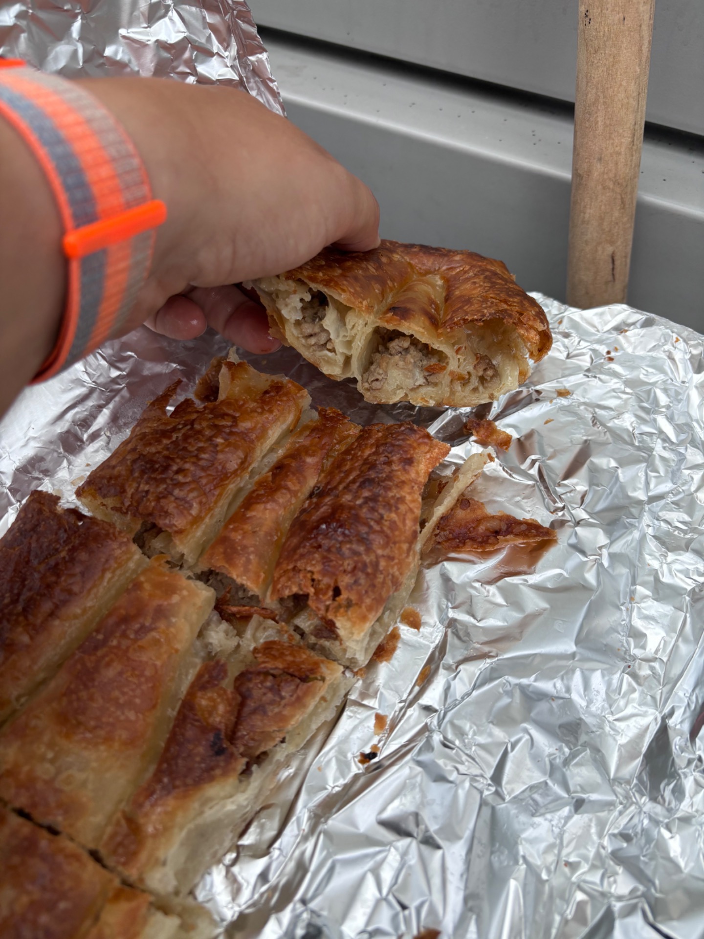 Na předoběd jsme si na jedné z benzinek koupily moc dobrou věc - Bürek, takový šnek z listového těsta plněný mletým masem a zapečený do křupava. Bylo to dost mastné ale velká dobrota.