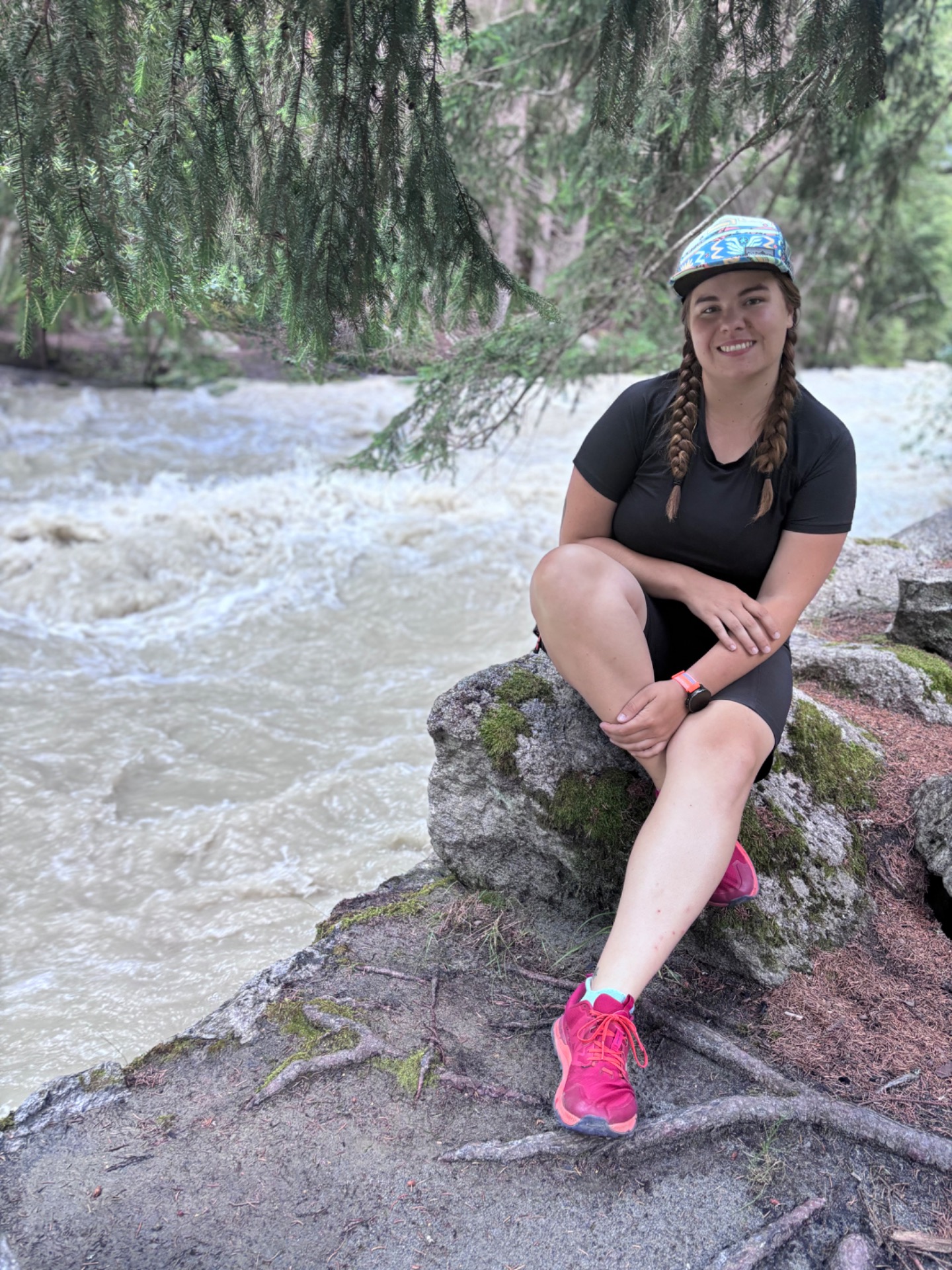 Za chvíli dojíždíme na jedno z nejkrásnějších míst, která jsem kdy viděla. Ale to zjistím až zítra. Teď si jen fotím krásné vysoké hory a zatím nevím, že to, co si fotím, je vrcholek Mont Blancu. Parkujeme na místě nalezeném opět přes Park4night, chystáme si tortilly na večeři a jdeme se projít po okolí, po celém dni v autě nám to prospěje. Nacházíme nádhernou ale rozvodněnou řeku, moc hezké lesní cestičky i dřevěné domky, kterými je okraj Chamonix úplně poseto.