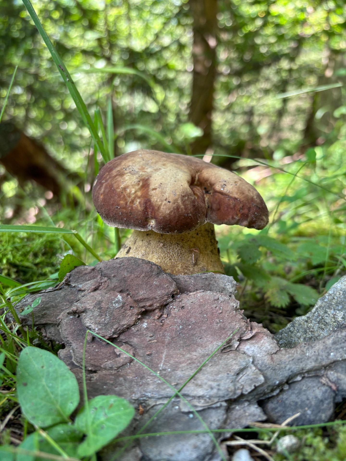 Začínáme na příjemné lesní cestě a potkáváme pár lidí, kteří chodí mimo cestičky a něco sbírají… jahody! 🍓 Tak tohle bude dlouhá cesta. Sbíráme kolem cesty ten malý lesní poklad a užíváme si tu parádu. Za chvíli se nám otevírají první výhledy do údolí a my už teď víme, že dnešek bude velký dobrý.