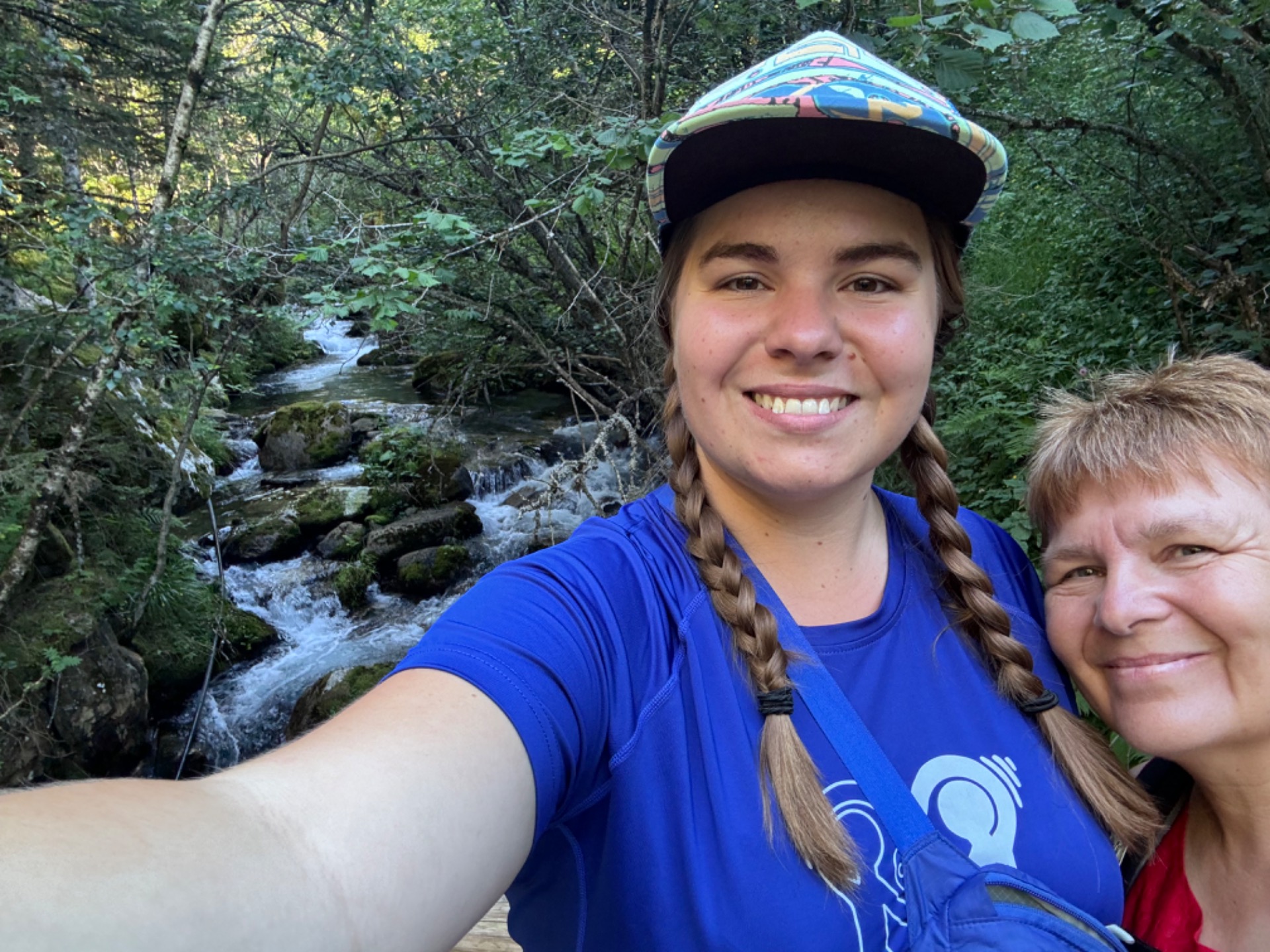Chvilku si tady posedíme a v mapě nacházíme vyhlídkové místo kousek odtud podél jezera, tak se tam půjdeme ještě podívat. Projdeme kolem studánky a tak vyléváme mrtvou a teplou vodu a nabíráme živou a vychlazenou. Šlapeme ještě asi 20 minut do kopcem výhledem na jezero i skálu za ním až docházíme na plácek, kde je to všechno vidět ještě mnohem lépe.